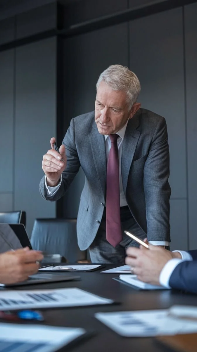 Allure : Style "dirigeant / corporate", charismatique et crédible en tant que Directeur Général.
