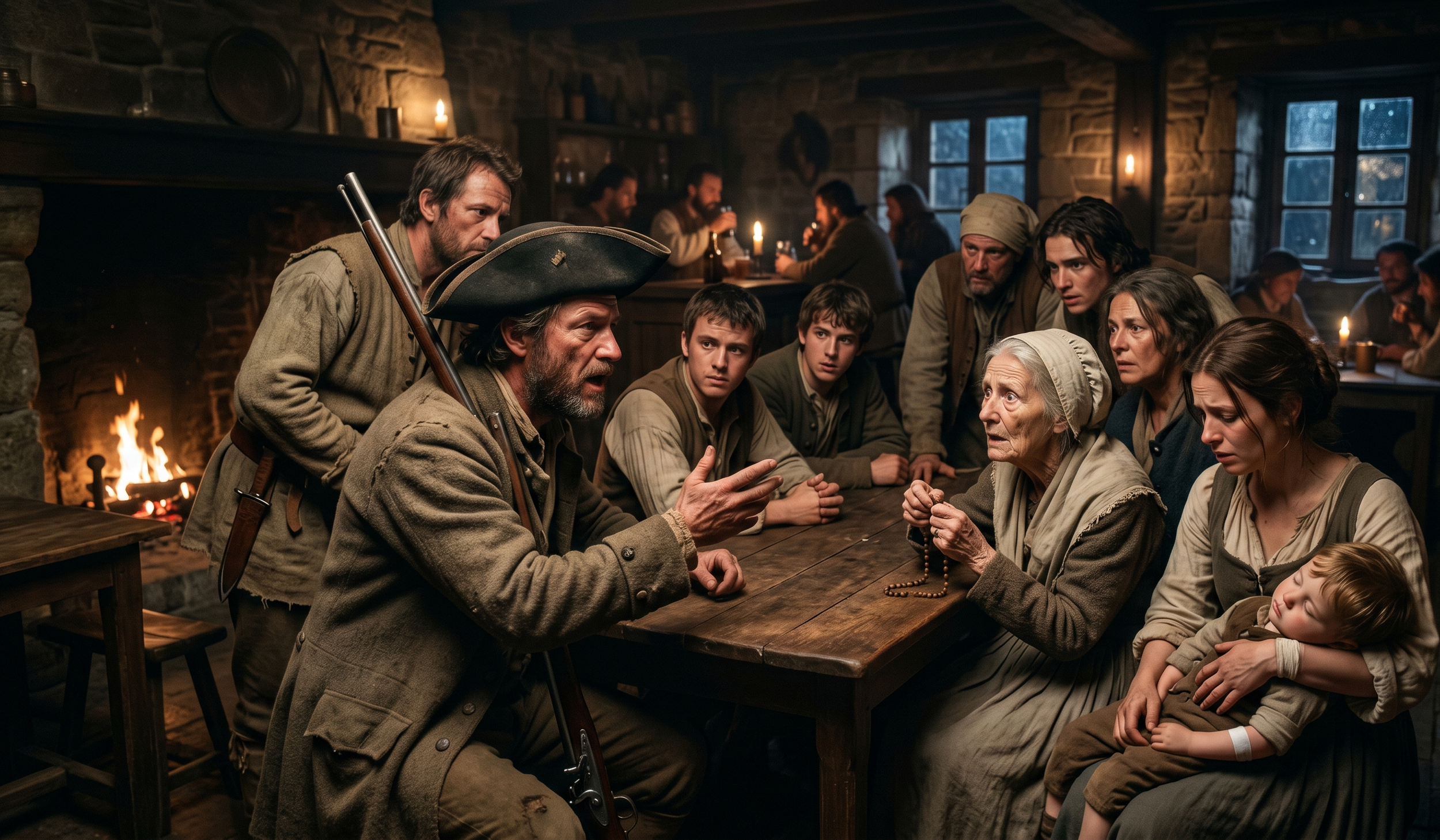 Fiction historique située dans une taverne où la peur s'installe suite à la reprise des attaques de la Bête. Entre croyances populaires et urgence d'agir, les personnages doivent faire face à l'horreur.